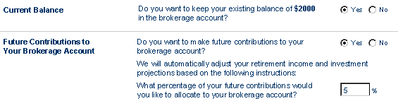 You have indicated that part of your retirement plan investments are directed to a brokerage account. We strongly recommend that you invest future plan contributions in the portfolio recommended by the Retirement Planner, so that you will have the most diversified possible investment mix for the long-term growth of your retirement assets. To learn more about the problems of investing your retirement plan in a brokerage account, click on the "Need More Help?" link. And to keep future contributions going to our recommended portfolio, choose "No" to the question below. |